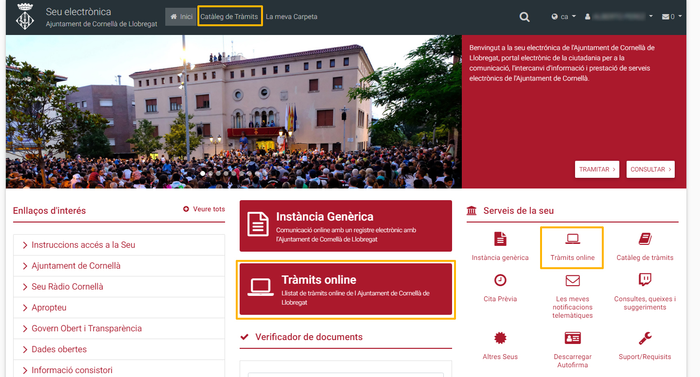 1-. Accediu a la web de la Seu Electrònica de l’Ajuntament de Cornellà de Llobregat (https://seuelectrònica.cornella.cat)