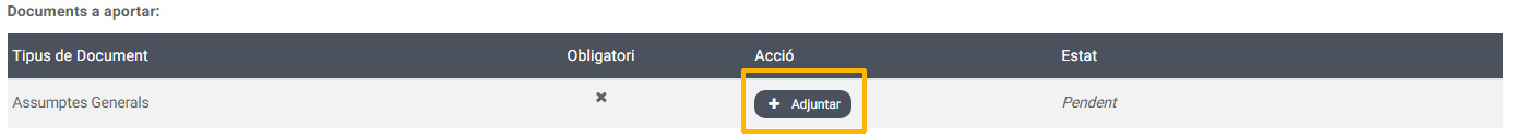 - Per adjuntar varis documents d’un mateix tipus, només heu d’anar fent clic al botó “ + adjuntar” que apareix a la dreta del tipus de document a adjuntar.